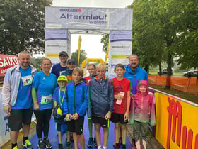 Einige Strudengaucup Kids nahmen beim Altarmlauf in Wallsee teil. Der viele Regen konnte den Kids den Spaß am Laufen nicht verderben.